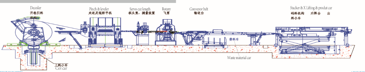 A máquina de corte a comprimento de precisão consiste principalmente em um carrinho de carregamento, desenrolar, mecanismo de alimentação de nivelamento, mecanismo de alimentação, máquina de cisalhamento, dispositivo de transmissão e dispositivo de empilhamento. A linha de produção pode ser equipada com uma máquina de cortar para cortar o material da folha na largura necessária, executar o corte específico do comprimento e empilhar o material. A linha de corte a comprimento é um produto de alto desempenho que integra máquinas, eletricidade e hidráulica. Possui alta automação, operação simples e confiável, alta precisão de comprimento, excelente planura do material da folha e empilhamento limpo.
